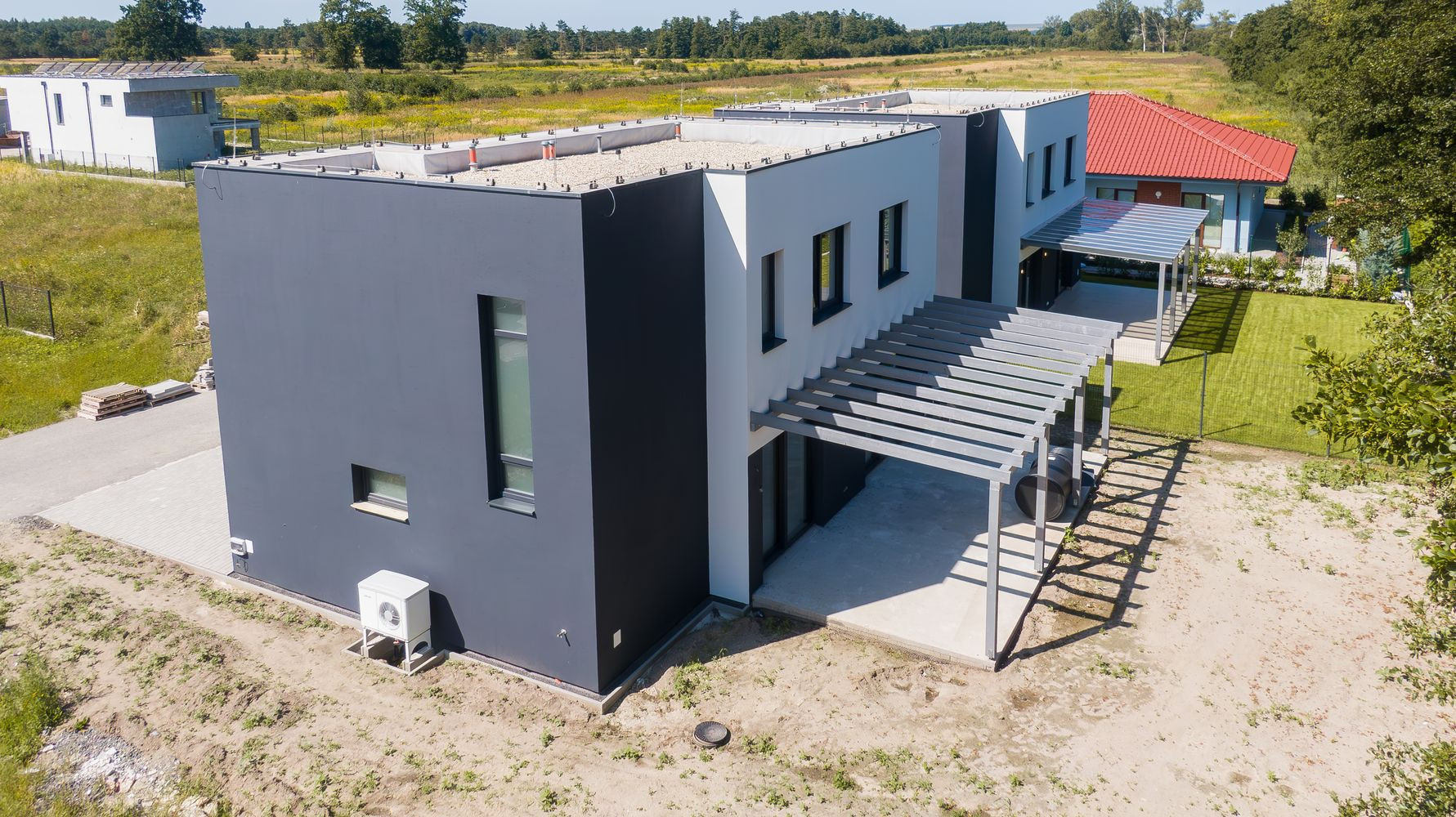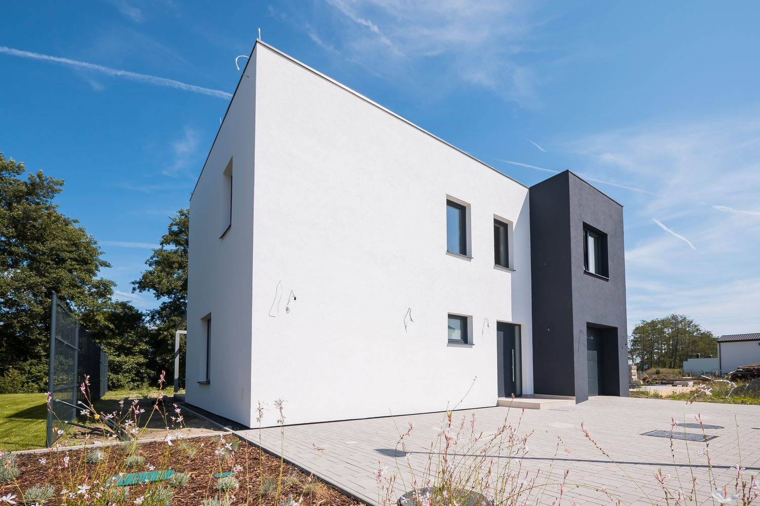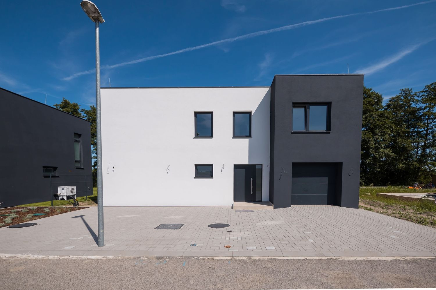 - hliníkové vchodové dvere a dva HS-portály vo farbe antracit