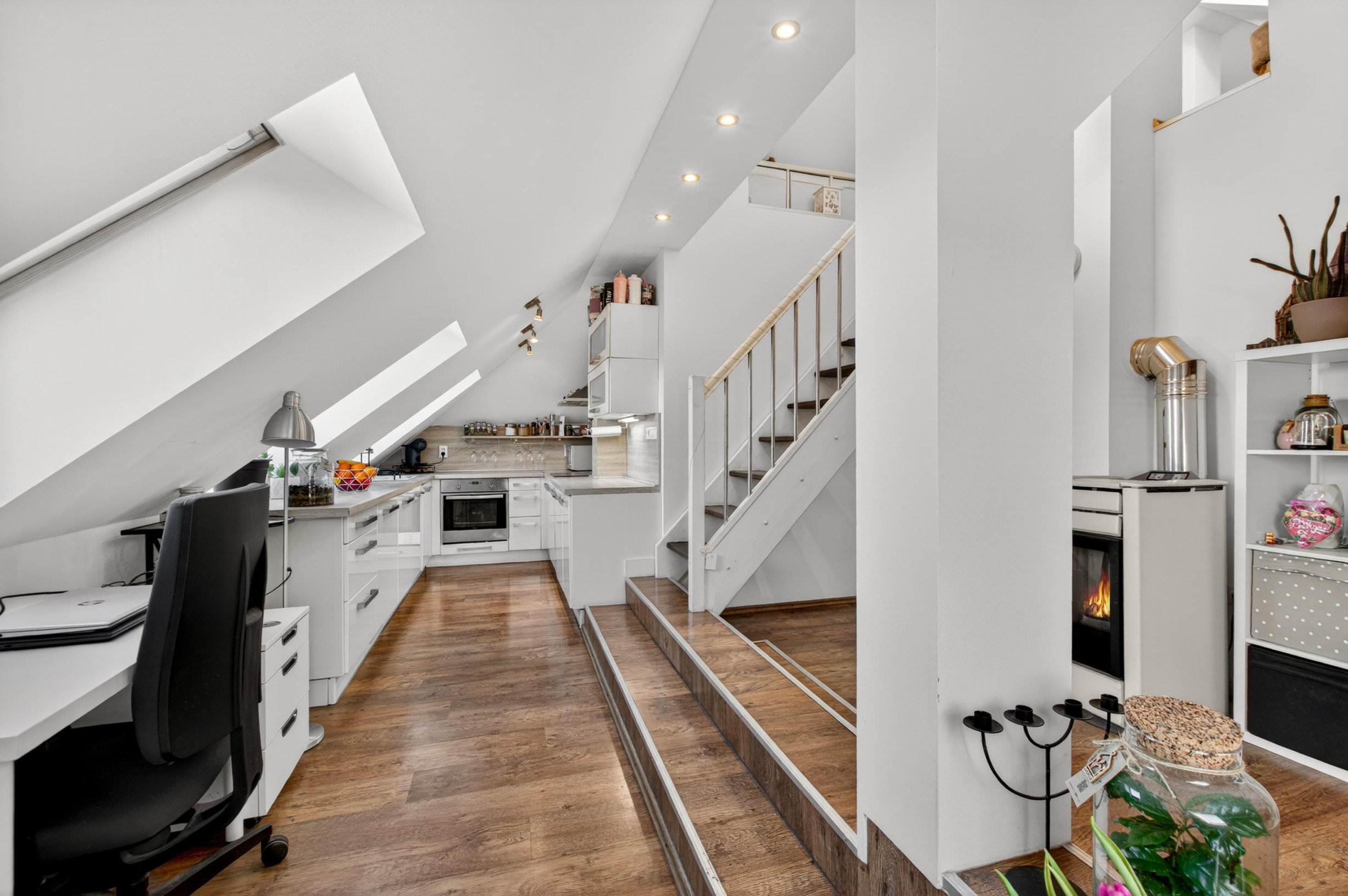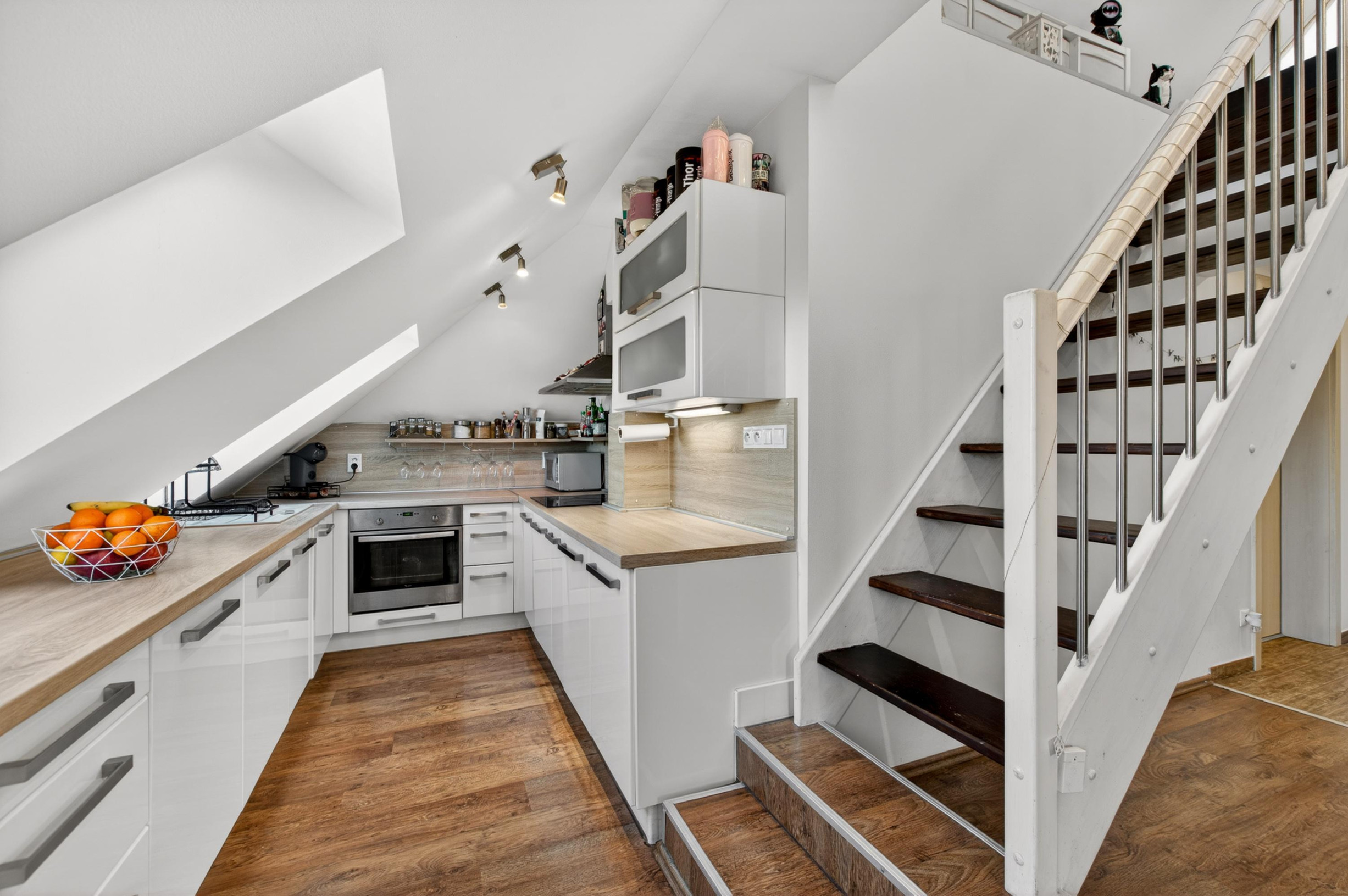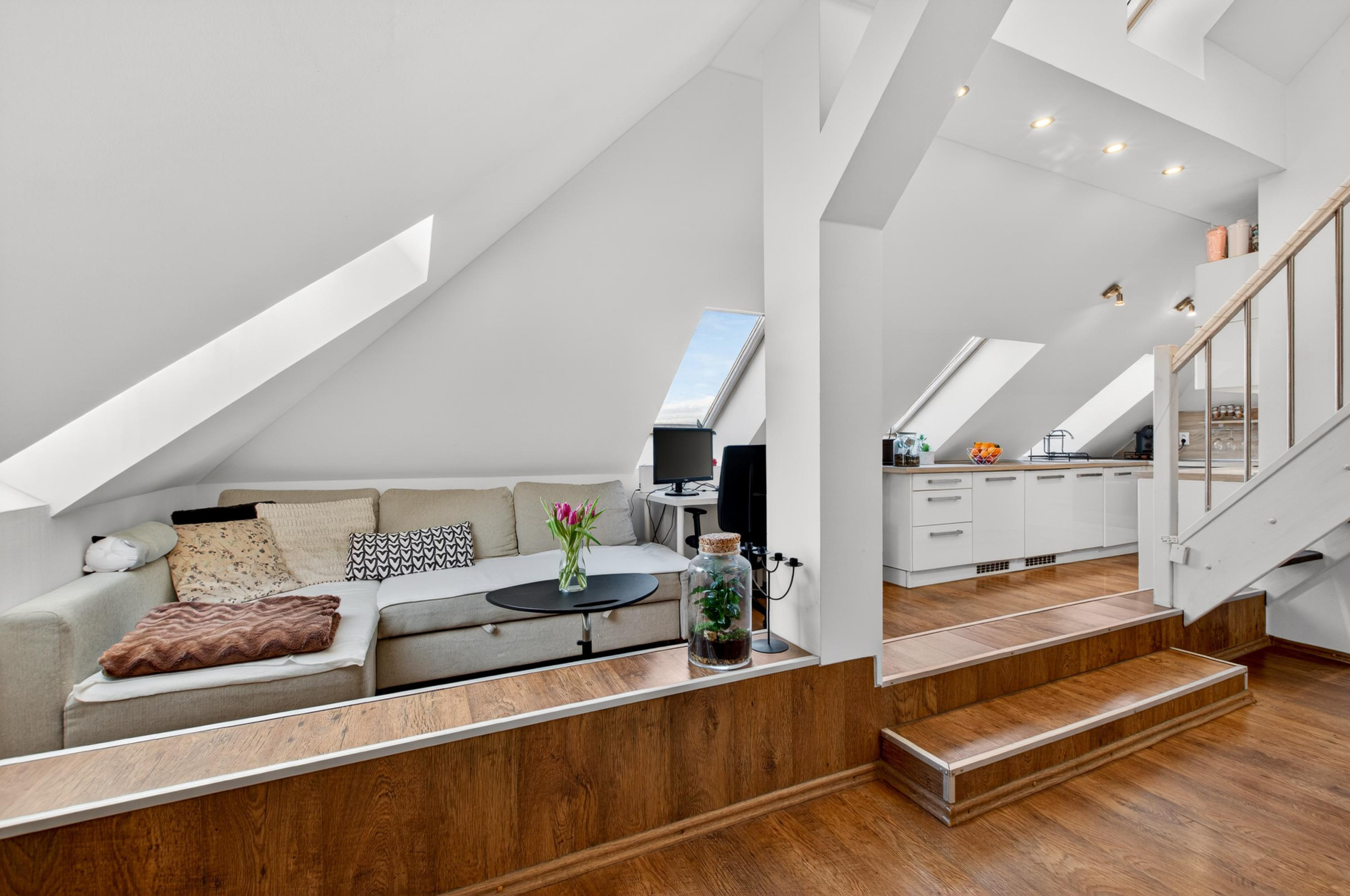 Svetlo padá cez strešné okná a vytvára atmosféru, akú nenájdete v paneláku ani v novostavbe. Kompaktné, no veľmi dobre využiteľné – všetko tam má svoje miesto a nič nechýba